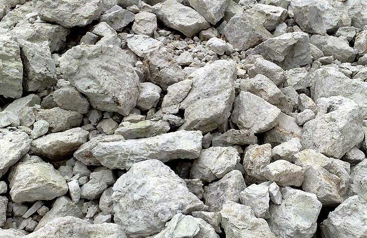 大塊長(zhǎng)石經(jīng)破碎機(jī)破碎到能進(jìn)入磨粉機(jī)的入料細(xì)度(15mm-50mm)。