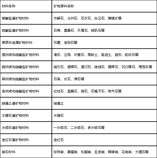 非金屬礦物分類(化學(xué)成分和結(jié)構(gòu))
