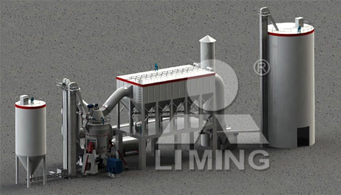 磨粉系統(tǒng):物料在磨粉機內(nèi),通過磨輥和磨環(huán)的相互碾壓粉碎,經(jīng)過選粉機的篩選之后,由鼓風(fēng)機吹出的風(fēng)把合格的物料輸送到磨粉機的旋風(fēng)集粉器內(nèi),經(jīng)卸料閥輸出即為成品,不合格的物料被選粉機打落之后重新研磨。整條生產(chǎn)線為負(fù)壓密閉循環(huán)系統(tǒng),并配有脈沖除塵器進行除塵,滿足國家環(huán)保要求。
